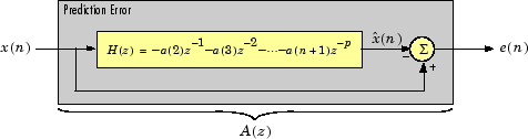 [ находит коэффициенты a,g] = lpc(x,p)pЛинейный предиктор th-го порядка, фильтр FIR, который предсказывает текущее значение действительного временного ряда x на основе прошлых образцов. Функция также возвращает g, дисперсию ошибки прогнозирования. Если x является матрицей, функция обрабатывает каждый столбец как независимый канал.