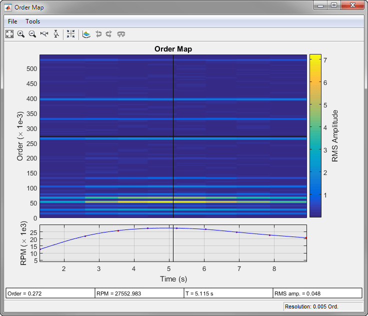 orderspectrum | ordertrack | orderwaveform | rpmfreqmap | rpmtrack | spectrogram | tachorpm