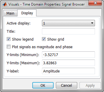 Чтобы включить или отключить этот режим, в меню Signal Browser выберите View > Properties, чтобы открыть диалоговое окно Visuals: Time Domain Options. На главной панели можно задать для параметра Максимизировать оси (Maximize axes) одну из следующих опций .