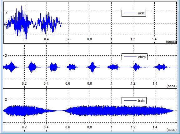 t = 0:1/2000:2-1/2000; q = chirp(t-2,4,1/2,6,'quadratic',100,'convex').*exp(-4*(t-1).^2); Chirp = sptool('load',q,2000)