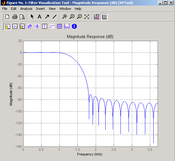 Инструмент визуализации фильтра (FVTool) позволяет просматривать характеристики разработанного или импортированного фильтра, включая его амплитудную характеристику, фазовую характеристику, групповую задержку, фазовую задержку, график полюса-нуля, импульсную характеристику и ступенчатую характеристику. Чтобы активировать FVTool, нажмите кнопку View в списке Filters в SPTool.