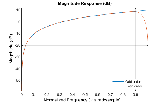 fvtool(b,1,bb,1) legend('Odd order','Even order','Location','best')