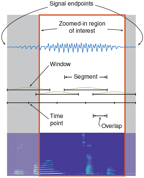 Разделите сигнал на сегменты равной длины. Сегменты должны быть достаточно короткими, чтобы частотное содержание сигнала не изменялось заметно внутри сегмента. Сегменты могут перекрываться или не перекрываться.