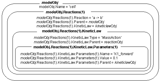 kineticlawObj = addkineticlaw(reactionObj, 'MassAction');Добавьте параметр и назначьте его объекту кинетического закона (kineticlawObj); добавить другой параметр и назначить его объекту модели (modelObj).
