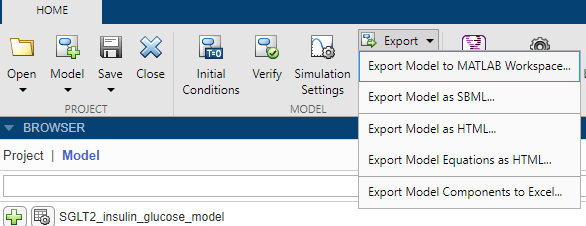 SimBiology Model Builder позволяет экспортировать модель в различные форматы файлов. Вы можете: