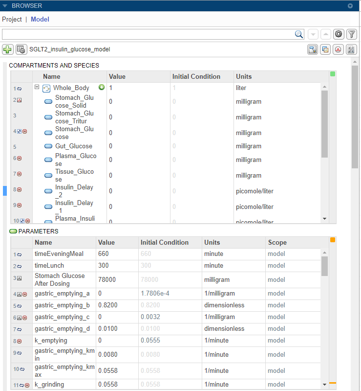 Завершенную модель для этого примера можно найти в matlabroot\examples\simbio\data\SGLT2_model.sbproj, где matlabroot - папка, в которой установлен MATLAB.