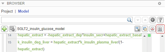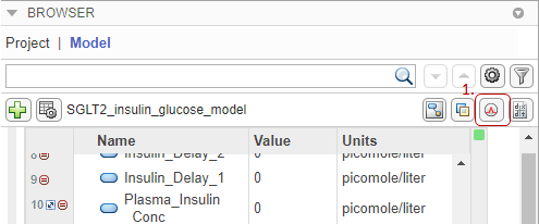 Щелкните значок Plasma_SGLT2_Inhib блок на схеме.