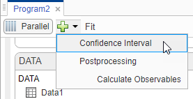 Вернитесь к программе посадки. Щелкните значок (+) в верхнем левом углу и выберите Confidence Interval. После шага Вписать (Fit) появится шаг Доверительный интервал (Confidence Interval).