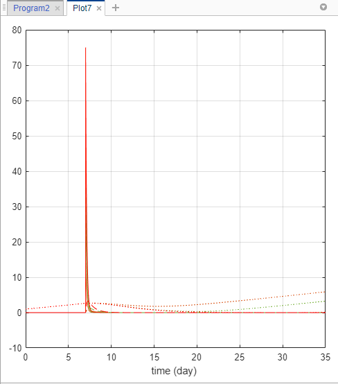 После подгонки к данным можно задать значения модели для оценок параметров и выполнить другие анализы. Например, вы можете найти важные параметры модели с помощью анализа чувствительности и изменить чувствительные параметры, чтобы исследовать изменчивость модели с помощью виртуальных пациентов.