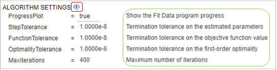 Настройки алгоритма (Algorithm Settings) - наиболее распространенные параметры метода оценки. Щелкните, чтобы развернуть сечение и просмотреть параметры. Чтобы просмотреть описание каждой опции, щелкните значок информации справа от заголовка.