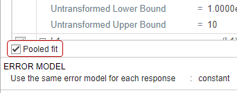Выберите Объединенный подбор, чтобы оценить один набор параметров для всех пациентов (подбор популяции). Если вы не выберете вариант Объединенная подгонка, приложение оценит один набор параметров для каждого пациента (индивидуальная подгонка).
