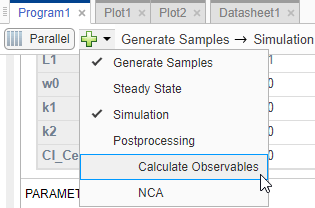 Вернитесь к программе, щелкнув вкладку «Program1». Щелкните значок (+) в верхней части программы и выберите Рассчитать наблюдаемые в разделе Постобработка.