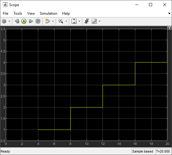 Увеличение времени моделирования до 20 и запустите моделирование. Наблюдение за объектами, поступающими в блок терминатора объектов с задержкой 4.