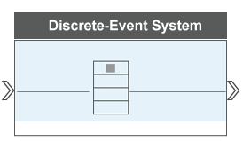 Пользовательский блок системы дискретных событий MATLAB принимает объект из своего входного порта и направляет его в свой выходной порт с заданной задержкой. На рисунке показан блок с использованием структуры системы дискретных событий.
