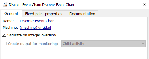 Свойства диаграммы дискретных событий позволяют указать, как диаграмма взаимодействует с Simulink ® и SimEvents. Эти свойства являются подмножеством свойств диаграммы Stateflow.