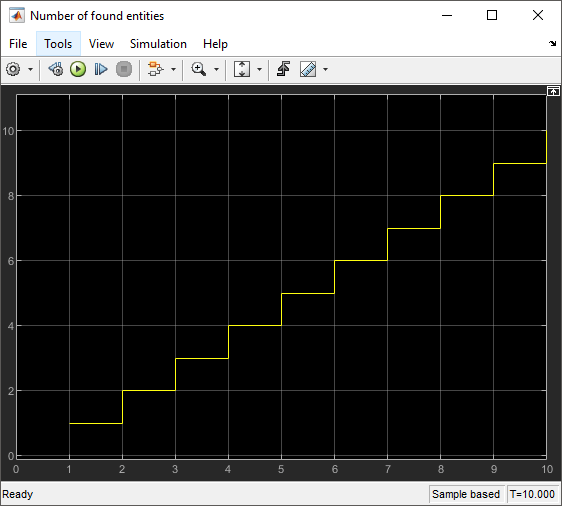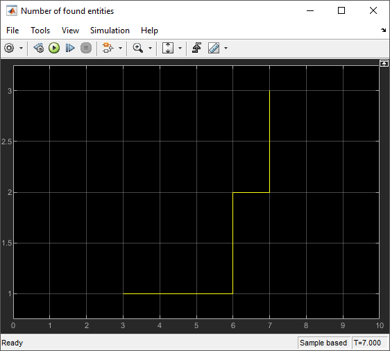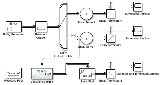 Каждая запись объекта вызывает Trigger(u) в блоке Simulink Function, который запускает блок Entity Find.