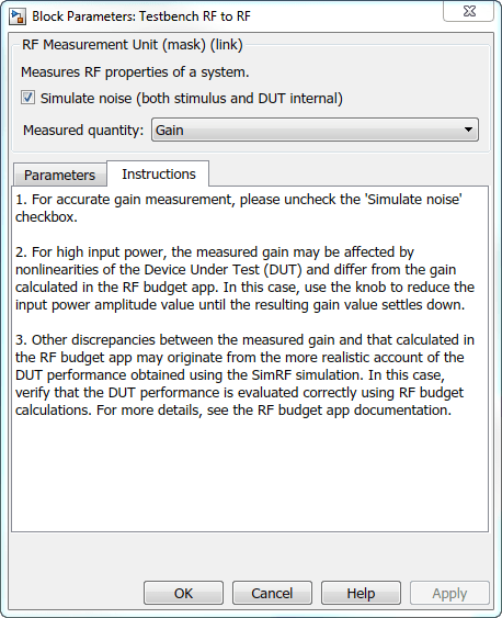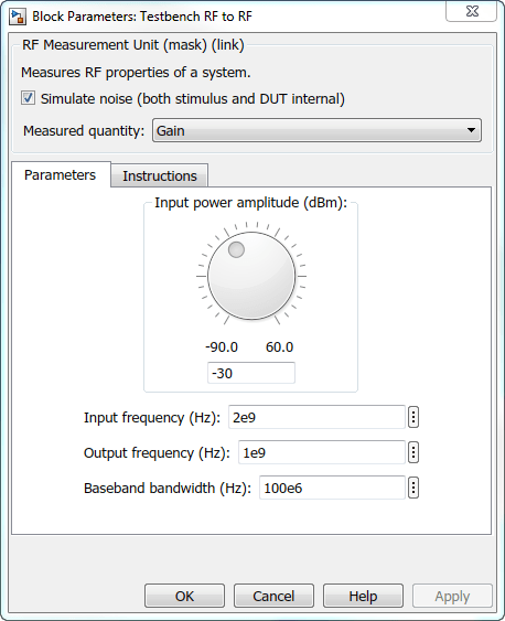 Дважды щелкните по блоку подсистемы RF Measurement Unit, чтобы открыть параметры.