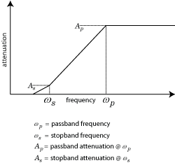 Stopband attenuation (dB) - Затухание полосы останова40 (по умолчанию) | скалярЗатухание полосы останова, указанное как скалярная дБ. Для полосовых фильтров это значение применяется одинаково к обоим краям полосы останова.