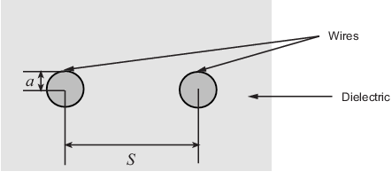 Two-wire - линия передачи как двухпроводная линия передачи. Двухпроводная линия передачи показана в поперечном сечении на следующем рисунке. Его физические характеристики включают радиус проводов, а, разделение или физическое расстояние между центрами проводов, S, и относительную диэлектрическую проницаемость и проницаемость проводов Привязки (References). Программное обеспечение RF Blockset™ Equivalent Baseband предполагает, что относительная диэлектрическая проницаемость и проницаемость одинаковы.
