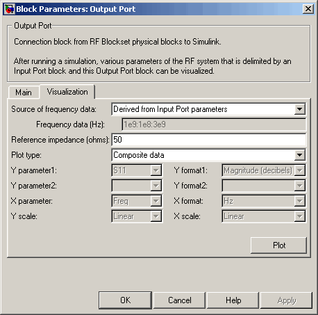 При внесении изменений в параметры блоков, представляющих отдельные радиочастотные компоненты, необходимо обновить все открытые графики, поскольку блок не перерисовывает графики автоматически.