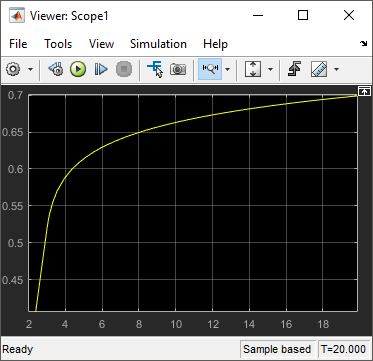 Выборка модели. Добавьте в подсистему блок удержания нулевого порядка из библиотеки дискретных данных и установите для параметра Sample time значение 0.25.