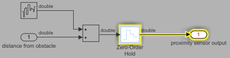 Блок удержания нулевого порядка в подсистеме модели сенсора перекрывает сигнал от непрерывного до дискретного.