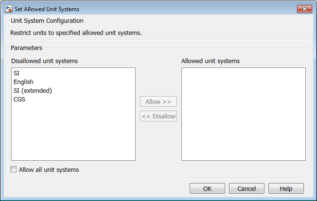 Используйте кнопки Разрешить (Allow) и Запретить (Disallow), чтобы разрешить или запретить выбранные системы единиц измерения.