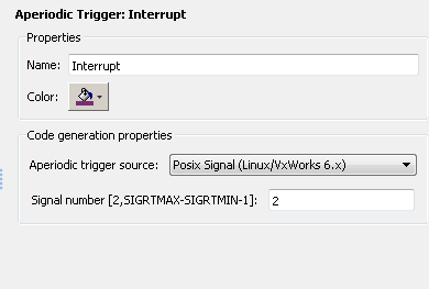 Aperiodic trigger source > Posix signal (Linux/VxWorks 6.x) включает этот параметр.