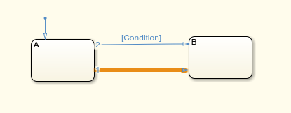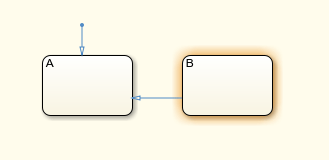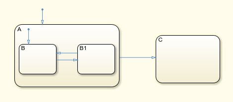 Безусловные пути из состояний. На этой диаграмме, первоначально состояние A и состояние B активны. Затем диаграмма принимает безусловный переход в состояние C, и состояние C становится активным. Переход к состоянию B1 не выполняется и состояние B1 недостижим.
