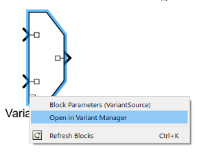 Щелкните Открыть блок (Open block) в Диспетчере исполнения (Variant Manager), доступном в диалоговом окне «Параметр блока исполнения» (Variant Block Parameter)