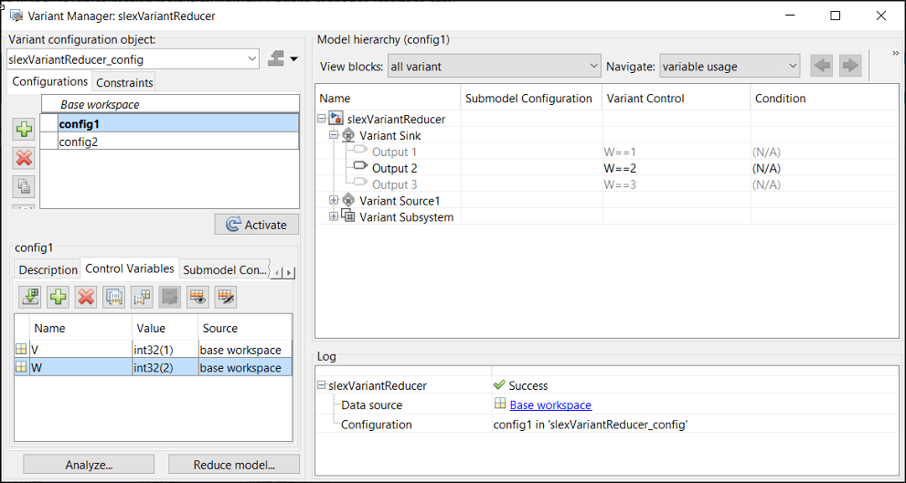 Сведения об анализе конфигураций исполнения из Диспетчера исполнений см. в разделе Анализ конфигураций исполнения в моделях, содержащих блоки исполнения. Сведения об анализе конфигураций вариантов из командной строки см. в разделе Simulink.VariantConfigurationAnalysis.