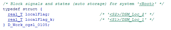 | Примечания | Используйте параметр конфигурации Повторяющиеся имена хранилища данных, чтобы определить непреднамеренное повторное использование идентификатора. Для моделей, намеренно использующих локальные хранилища данных, установите для диагностики значение Блоки хранения данных реализуются как глобальная память в сгенерированном коде. Если им не присвоен определенный класс хранения, они включаются в структуру DWork. В модели объем хранилища данных определяется определяющей подсистемой и ниже. В созданном коде хранилище данных имеет область файла. | |