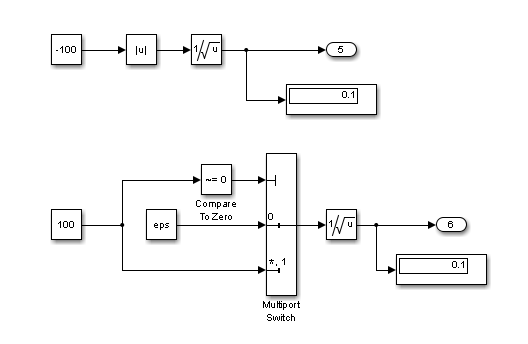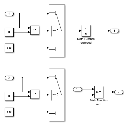 | Примечание | Чтобы доказать, что деление на ноль невозможно, выполните статический анализ модели. Если возможно разделение на ноль, выполните одно из следующих действий. Использование нескольких вариантов может привести к резервированию операций защиты: