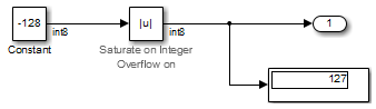 | Примечания | Блок Abs не поддерживает логические типы данных. Указание неподписанного типа входных данных может оптимизировать блок Abs из сгенерированного кода, что приведет к тому, что блок, который нельзя отследить по сгенерированному коду. Для подписанных типов данных Simulink ® не представляет абсолютное значение самого отрицательного значения. При выборе параметра «Насыщение при целочисленном переполнении» абсолютное значение типа данных достигает максимально положительного представимого значения. При сбросе параметра «Насыщение при переполнении целого числа» расчеты абсолютных значений в моделировании и сгенерированном коде могут быть непротиворечивыми или ожидаемыми . | ||