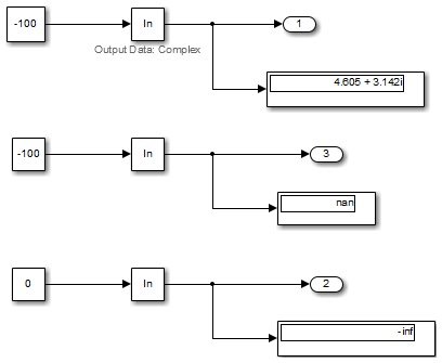 | Примечания | Если для типа выходных данных задано комплексное значение, функции натурального логарифма и базового логарифма 10 выводят комплексные значения для отрицательных входных значений. Если для типа выходных данных установлено значение real, функции выводят данные | ||