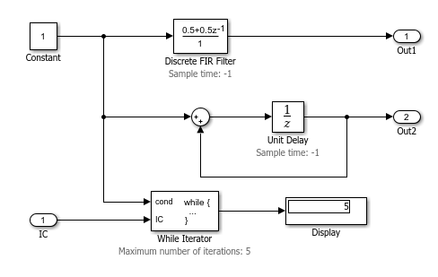 | Примеры | В следующем примере выводится предупреждение: блок дискретного фильтра FIR зависит от времени и находится в подсистеме For или While Iterator.