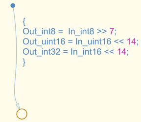 | Описание | Чтобы улучшить соответствие кода сформированному коду с операциями сдвига битов Stateflow, не выполняйте: | |
