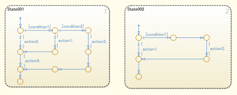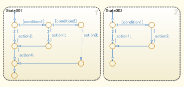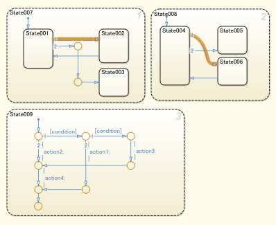 Трудно понять взаимосвязь между состояниями, когда переходные линии пересекают состояния.