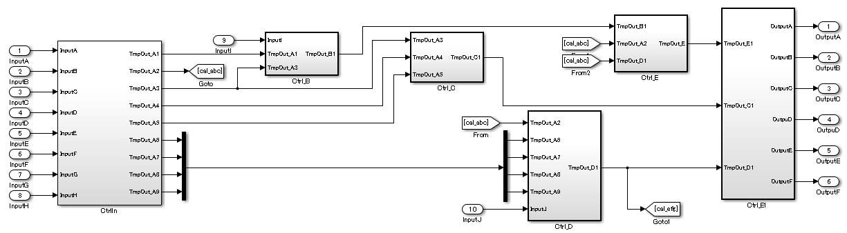 Параллельные блоки или подсистемы должны располагаться сверху вниз.
