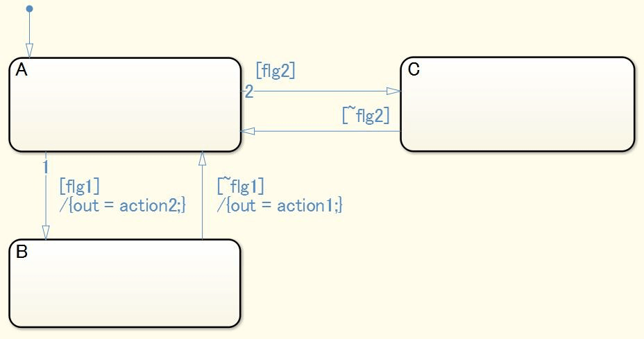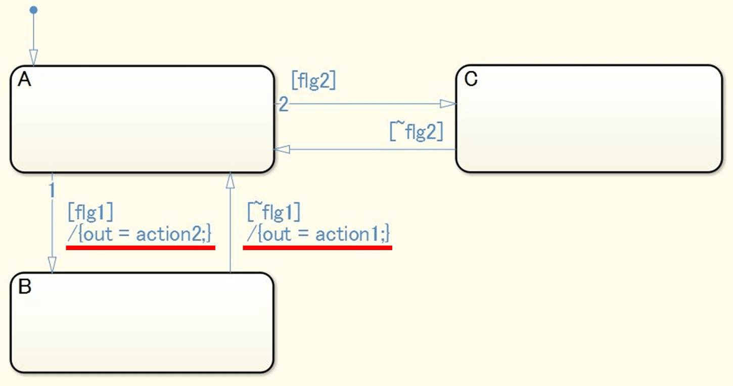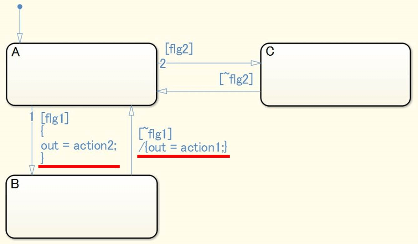 Действия перехода не должны использоваться в диаграмме Stateflow ® (Stateflow).