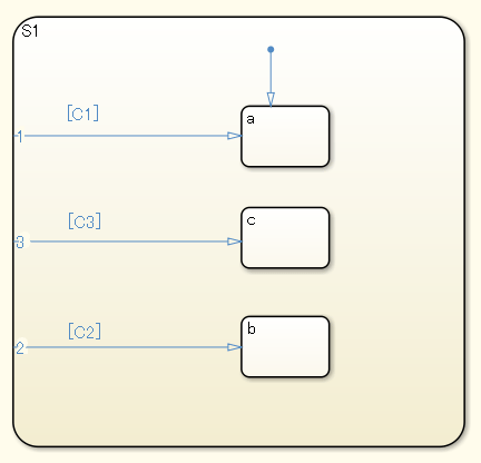 При использовании нескольких внутренних переходов в одном состоянии они перечисляются сверху вниз в порядке выполнения.
