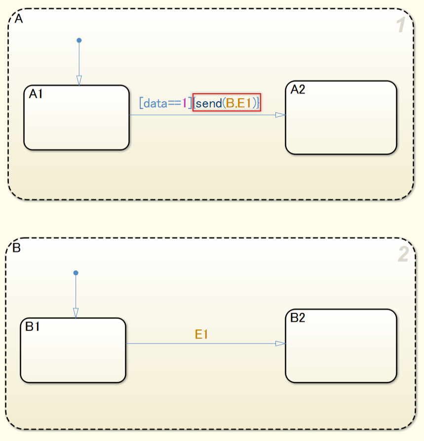 send (Stateflow) синтаксис send(state_name.event_name) с соответствующим именем события используется для трансляции событий Stateflow.