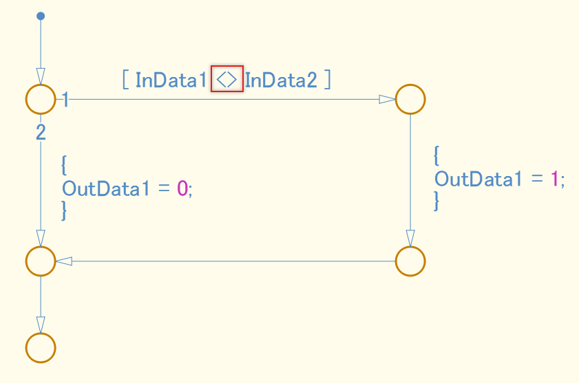 Если для свойства Stateflow Chart (Stateflow) для параметра Action Language установлено значение C, оператор <> используется для операций с неравенством.