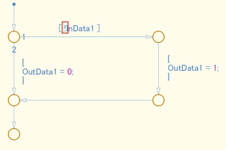 Если для свойства Stateflow Chart (Stateflow) для параметра Action Language установлено значение C, работа ! должен использоваться для логического отрицания.