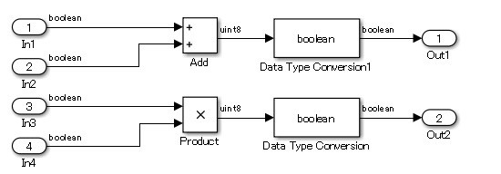 Логические сигналы не должны подключаться к блокам, работающим на числовых сигналах.