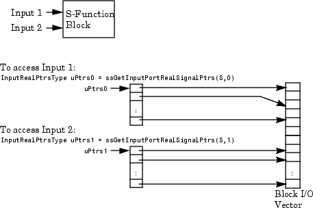 InputRealPtrsType uPtrs = ssGetInputPortRealSignalPtrs(S,inputPortIndex);