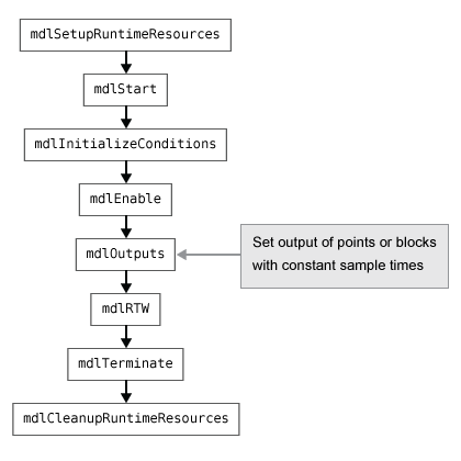 MdlInitialize(); Start функция для включенной подсистемы вызывает подсистему InitializeConditions функция: