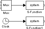 Например, на следующем рисунке показаны два экземпляра одного блока S-Function в модели.