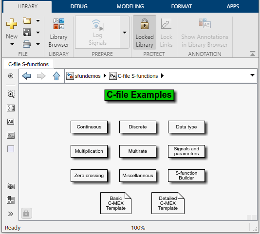 Может быть полезно изучить некоторые примеры S-функций, когда вы прочитаете следующие главы. Код примеров хранится в следующей папке в корневой папке MATLAB.