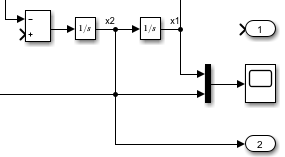 Имя блока, косая черта и имя или номер порта. Большинство портов блока пронумерованы сверху вниз или слева направо. Для порта состояния вместо номера порта используйте имя порта State.